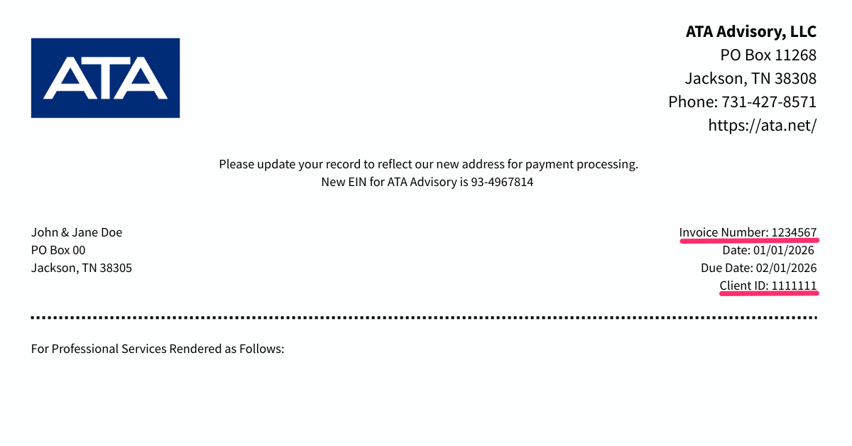 The ATA brand comprises independently owned entities, each accountable only for its own services and not responsible for the offerings of other entities under the same brand. The use of terms such as “our firm,“ “we,“ and “us“ refers to the alternative practice structure carried out by ATA, PC, and ATA Advisory, LLC.